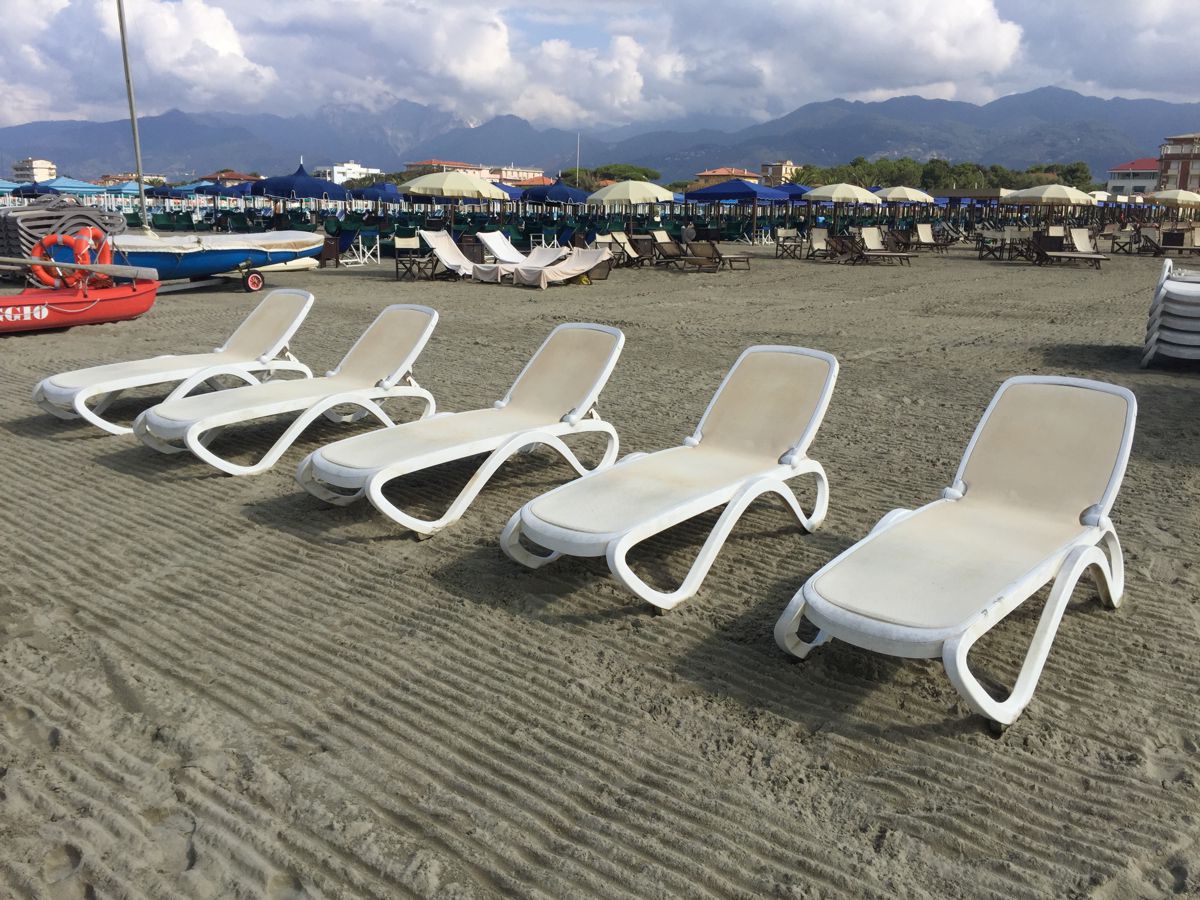 Для размещения на этом пляже, расположенном на берегу песчаного пляжа, было решено выбрать несколько вариантов шезлонгов.